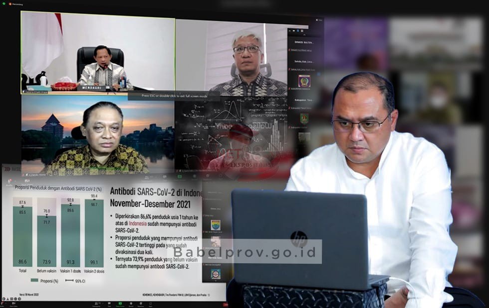 Angka tersebut dilihat dari proporsi penduduk dengan antibodi SARS CoV-2 per November dan Desember 2021. Demikian diungkapkan salah satu anggota Tim Pandemi Covid-19 FKM UI Pandu Riono, dalam konferensi pers secara hybrid bersama Menteri Dalam Negeri Tito Karnavian, dan Menteri Kesehatan Budi Gunadi, beserta kepala daerah di tingkat I dan II se-Indonesia, termasuk Gubernur Kepulauan Bangka Belitung (Babel) Erzaldi Rosman, Jumat (18/3/2022).