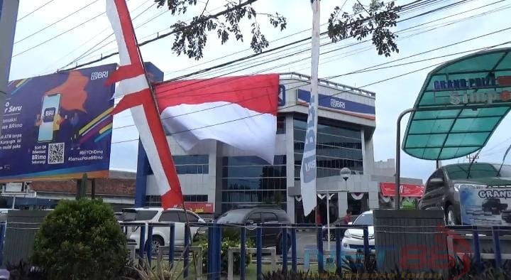Yang paling unik ada bendera merah putih ukuran besar ,hampir menutupi kantor BRI.