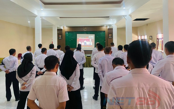 Lembaga Pemasyarakatan (Lapas) Kelas II A Pamekasan melaksanakan kegiatan apel awal tahun 2023 Kementerian Hukum dan Hak Asasi Manusia secara virtual yang berlangsung di aula Raden Dhaksena Lapas Kelas II A Pamekasan pada Rabu (04/1/2023).