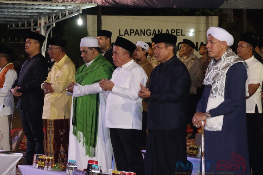 Kapolda Jawa Timur Irjen Pol. Dr. Toni Harmanto., M.H. bersama Ketua Bhayangkari Daerah Jawa Timur Ny. Yesika Toni Harmanto membaur dengan ratusan jamaah yang tergabung dari Polres Pasuruan, Polres Pasuruan Kota, Polres Probolinggo, dan Polres Probolinggo Kota melantunkan Zikir dan Sholawat serta pujian kepada Nabi Muhammad SAW.