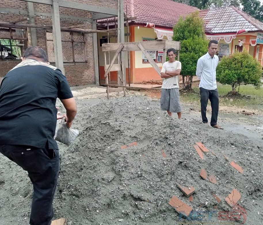 Sejumlah Paket Kegiatan yang berada Di lokasi SMAN 2 Simeulue Barat yang bersumber dari anggaran Dana DAK 2022 diduga kuat menggunakan bahan material pasir laut yang bercampur karang jari.