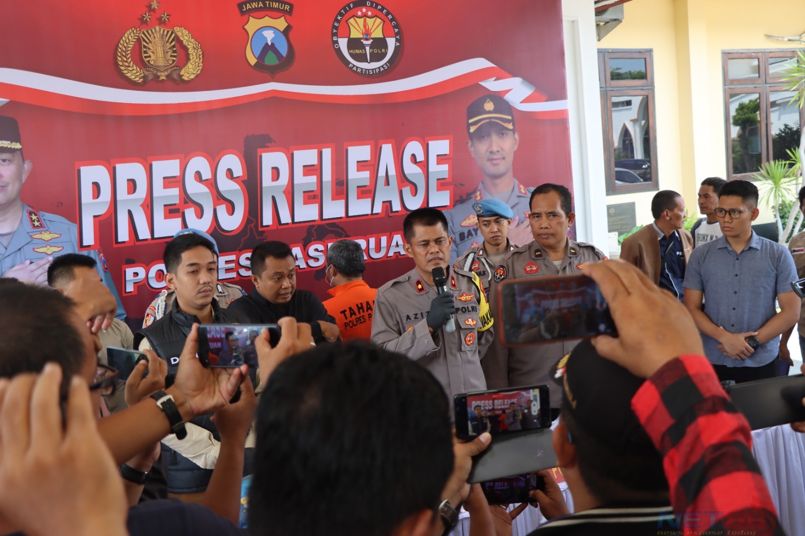 Sebagai tindak lanjut, Wakapolres Pasuruan Kompol Hari Aziz, S.H. bersama Kasat Reskrim Polres Pasuruan AKP Achmad Doni Meidianto, S.T.K., S.I.K., M.H. menggelar Press Release kasus Pembunuhan tersebut, yang bertempat di halaman Joglo Mapolres Pasuruan. Kamis (02/11/2023).