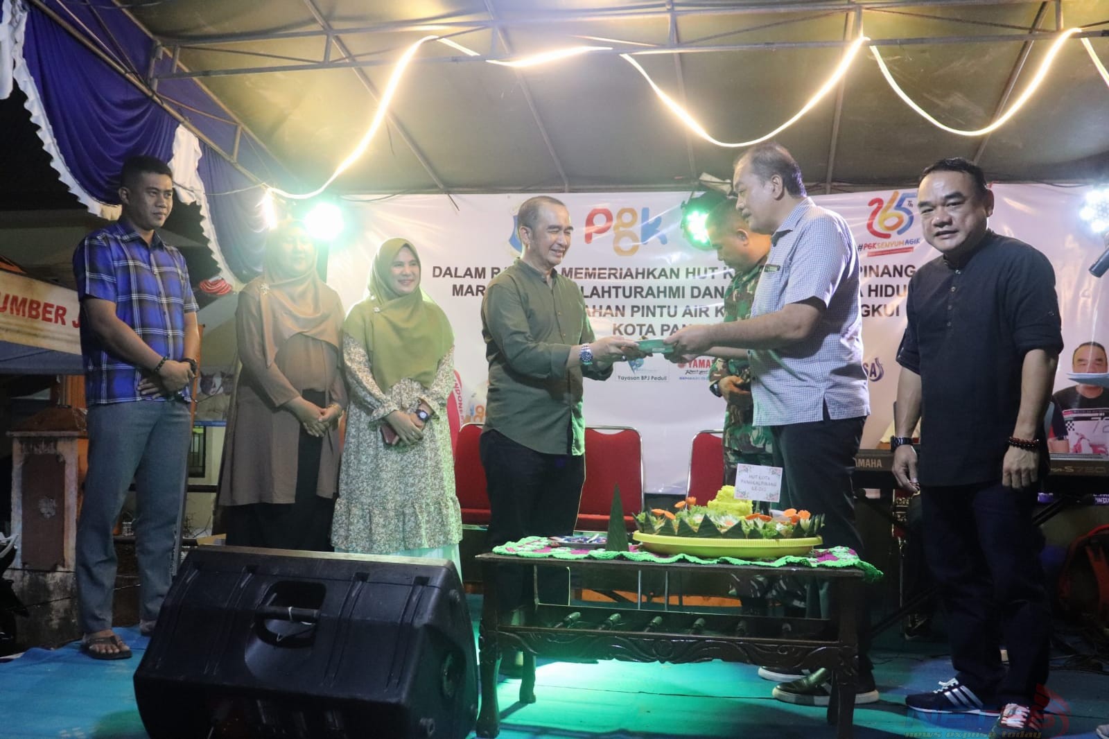 “Dari pagi tadi sudah kita laksanakan rangkaian kegiatan, tadi pagi jalan sehat, senam sehat dan malam ini pesta rakyat, puncak hiburan untuk masyarakat Pintu Air dan sekitarnya. Kegiatan ini dalam rangka berpartisipasi memeriahkan HUT Kota Pangkalpinang ke-265 tahun”, ungkap Lurah Kelurahan Pintu Air, Jonsory Laviko dalam sambutannya.