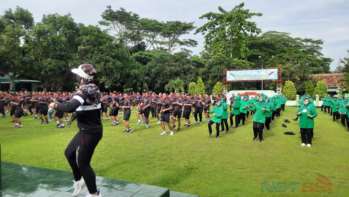 Olahraga bersama yang dilakukan para prajurit dan Persit KCK Cabang XLV Kodim 0826 Pamekasan bertempat di lapangan Upacara Makodim 0826 Pamekasan, Jum’at (06/01/2023).