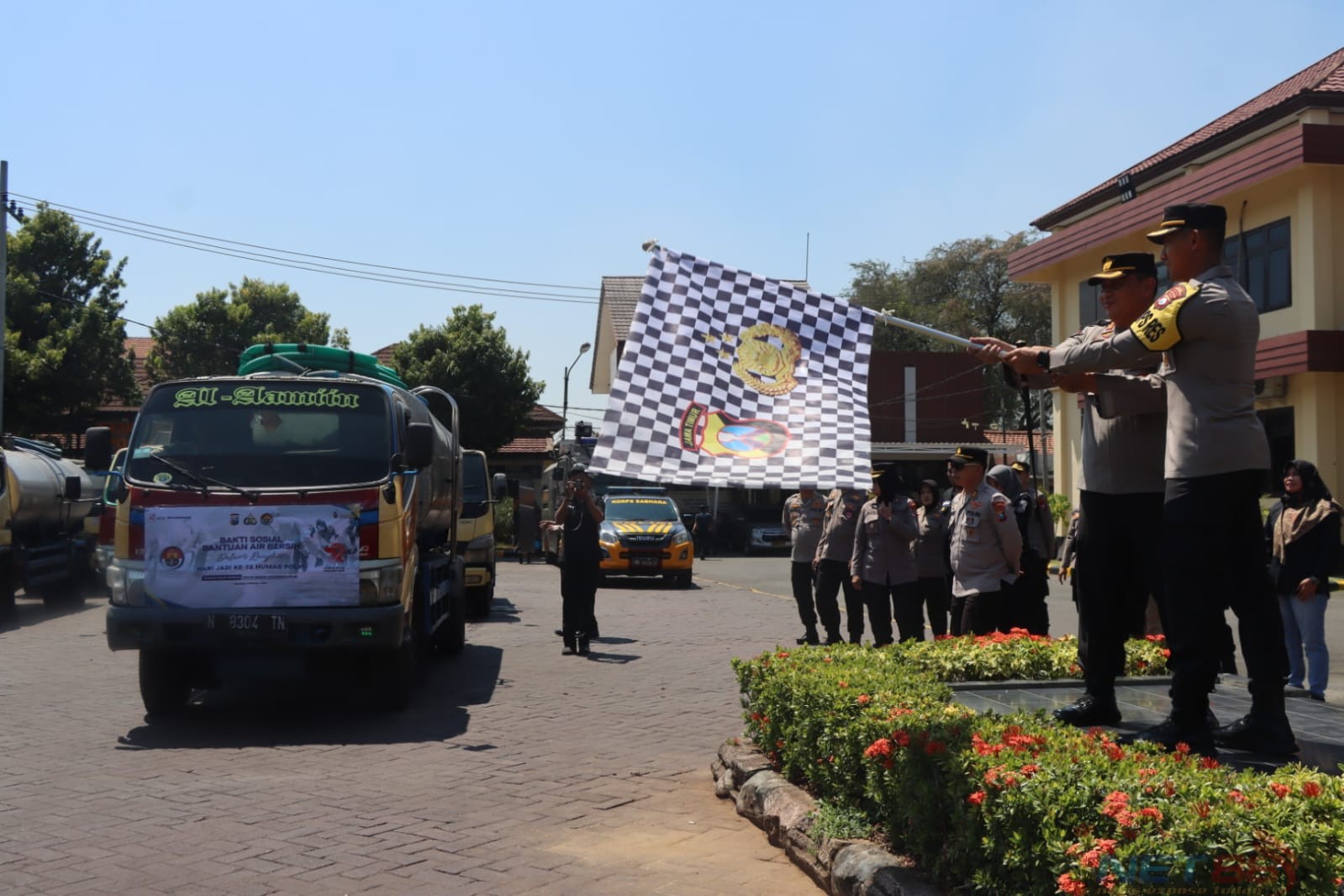 Kabid Humas Polda Jatim Kombes Pol. Dirmanto, S.H., S. I. K. menggelar kegiatan bakti sosial pemberian air bersih sejumlah 10 tangki kepada masyarakat di wilayah Kecamatan Pasrepan, Kabupaten Pasuruan yang didampingi oleh anggota Bid Humas Polda Jatim, Wakapolres Pasuruan Kompol Hendry Ferdinand Kennedy, S.H., S.I.K., M.I.K., Kasi Propam Polres Pasuruan, Kasi Humas Polres Pasuruan beserta anggota, Kapolsek Pasrepan, dan Camat Pasrepan.