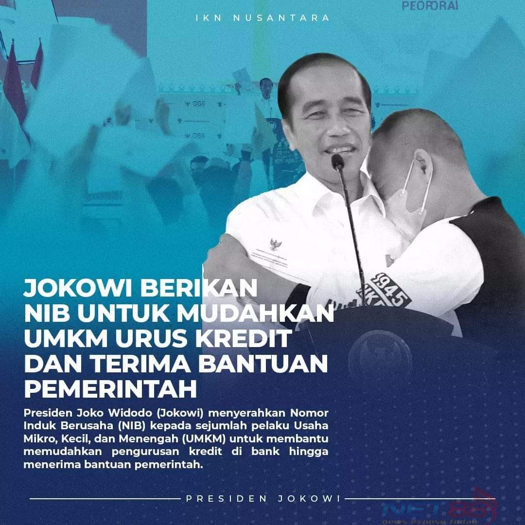 Presiden Joko Widodo (Jokowi) menyerahkan Nomor Induk Berusaha (NIB) kepada sejumlah pelaku Usaha Mikro, Kecil, dan Menengah (UMKM) untuk membantu memudahkan pengurusan kredit di bank hingga menerima bantuan pemerintah.