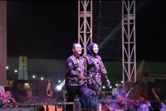 Ketua Bhayangkari Cabang Sumenep Ny. Dina Edo Satya Kentriko menghipnotis pengunjung yang hadir di gelaran festival batik Sumenep