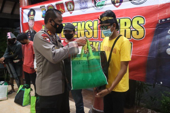 Usai diberikan pembinaan dan himbuan kamtibmas, sebanyak 15 orang yang terdiri dari petugas parkir liar dan pengamen jalanan tersebut diberikan bingkisan sembako oleh Kapolres Pamekasan, Sabtu (2/4/2022).