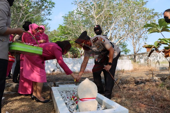 Upacara ziarah sekaligus tabur bunga yang gelar Polres Pamekasan Madura Jawa Timur di Taman Makam Pahlawan ( TMP ) Jalan Raya Panglegur pada Kamis 30 Juni 2022 pagi