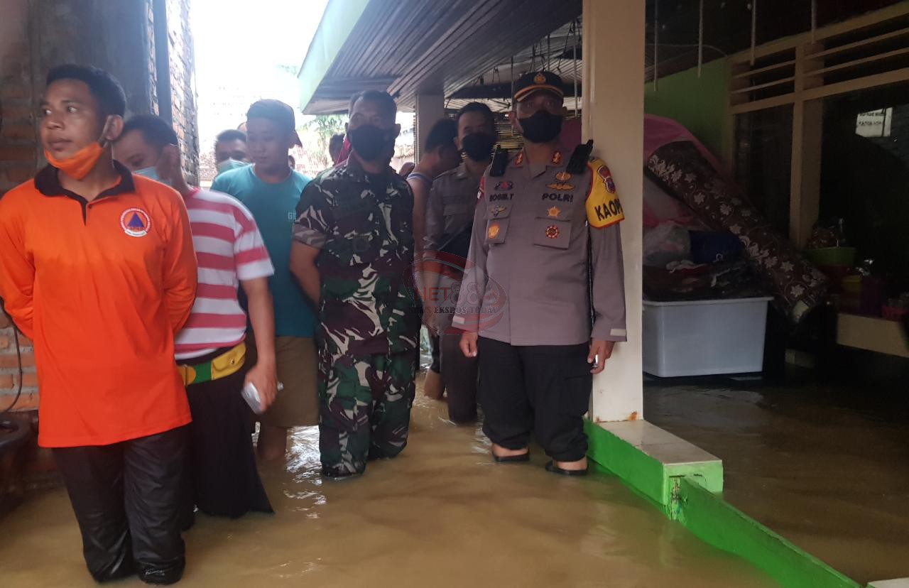 Kapolres Pamekasan, AKBP Rogib Triyanto, Sik., Bersama Forkopimda Pamekasan mendatangi lokasi terjadinya banjir di beberapa wilayah di Kabupaten Pamekasan, yang terdampak banjir, Selasa (1/3/2022).
