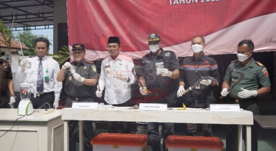 Pemusnahan dengan sejumlah barang bukti tindak pidana yang telah berkekuatan hukum tetap ( Inkracht ) yang berlangsung di Kejaksaan Negeri ( Kejari ) Sampang pad Rabu (22/06/2022).