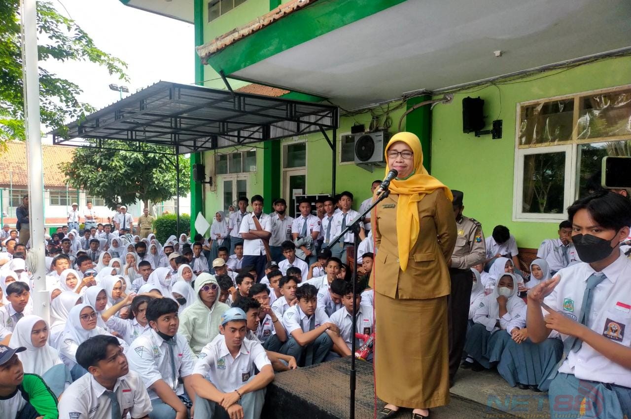 Ribuan siswa/wi SMKN 1 Boyolangu, Kabupaten Tulungagung, Jawa Timur menggelar aksi demo di halaman sekolah.