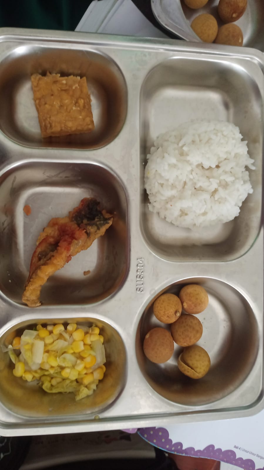 Seperti halnya yang terjadi hari ini, Kamis (15/01) SPPG Dharut Thalabah mengirimkan MBG ke sekolah penerima dengan menu Nasi putih, Lele Cryspy, Buah Kelengkeng, Tempe goreng dan sayur yang terdiri dari jagung dan sawi.