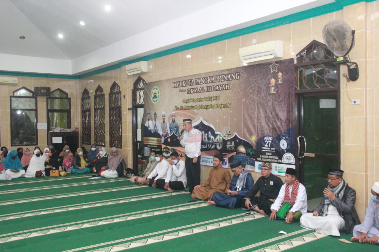 DKM Al Hidayah bersama Pemerintah Kota Pangkalpinang melaksanakan kegiatan keagamaan memperingati Isra Miraj Nabi Muhammad SAW 1443 hijriah di Masjid Al Hidayah, Minggu (27/2/2022) malam.
