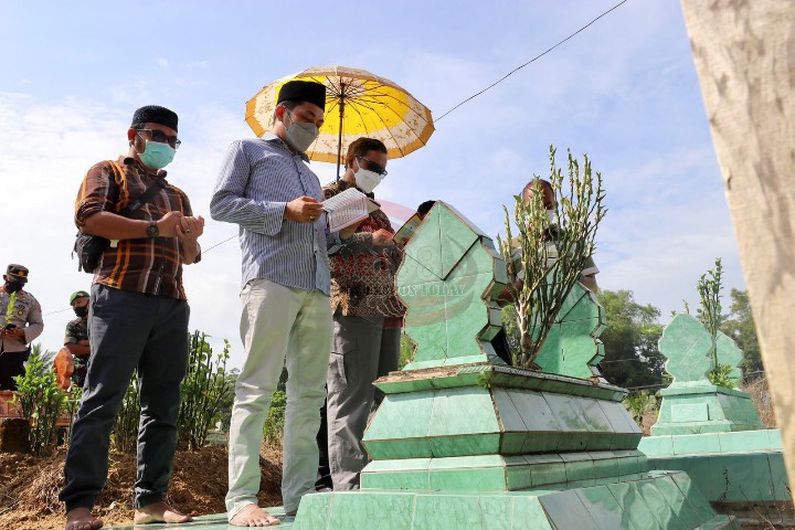 Menkopolhukam RI Mahfud MD pun disela kesibukannya menyempatkan diri nyekar ke makam orang tuanya, H Mahmoddin (MD), di Desa Plakpak, Kecamatan Pegantenan, Kabupaten Pamekasan hari ini.