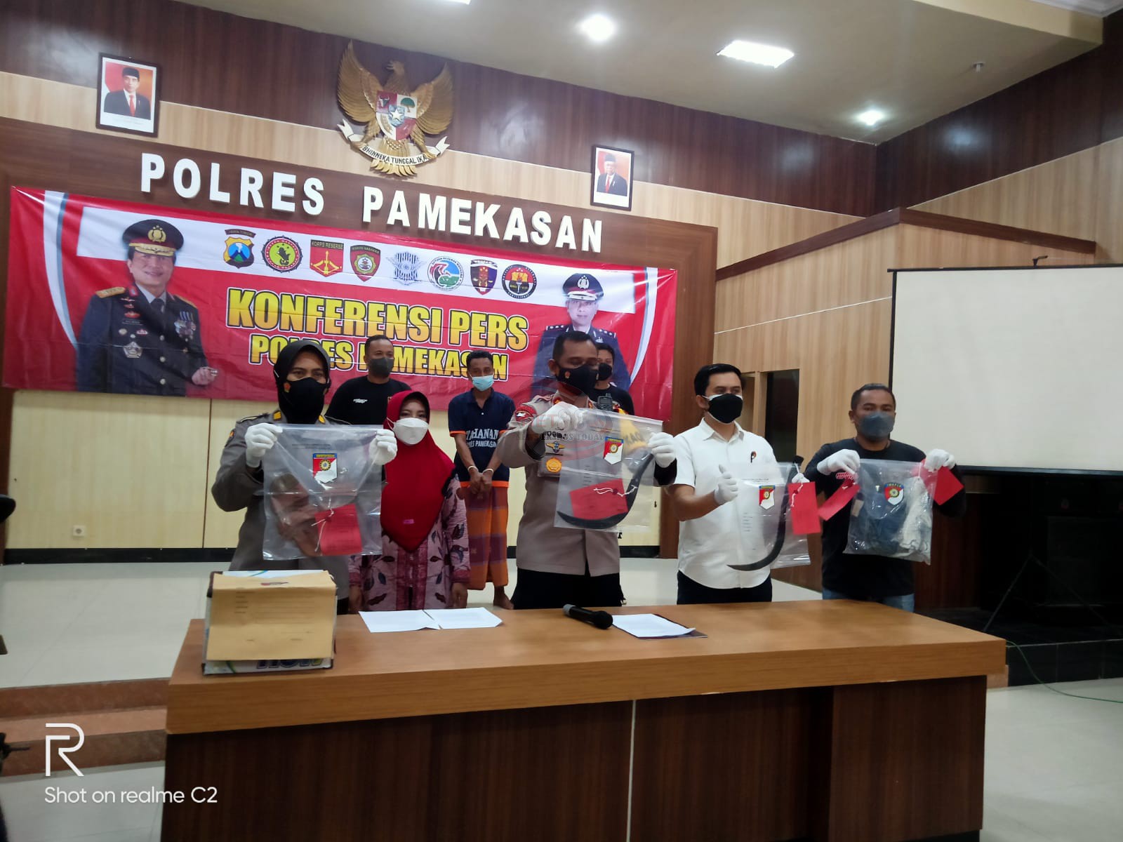 Dalam konferensi pers Ungkap Kasus tindak pidana pembunuhan yang digelar Polres Pamekasan, berlangsung di Gedung Bhayangkara pada Jumat 04 Maret 2022 pukul 09.00 Wib.