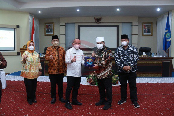 Wali Kota Pangkalpinang, Maulan Aklil menerima kunjungan kerja Pemerintah Kota Bengkulu dan Pemerintah Kota Jambi, Jumat (24/2/2022) di Ruang Pertemuan OR Kantor Wali Kota Pangkalpinang.
