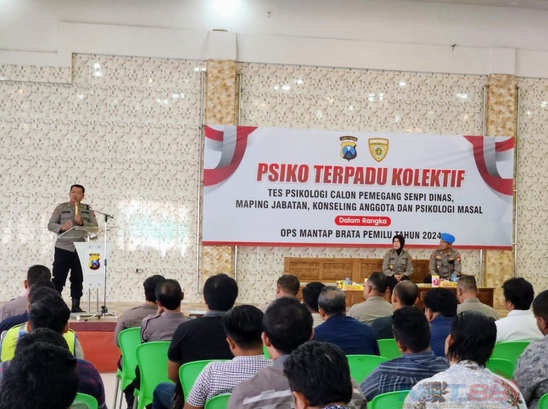Dalam backdrop yang terpampang di dinding Aula, terlihat tes psikologi ini diperuntukkan bagi pemegang senpi dinas, Maping Jabatan, Konseling Anggota dan Psikologi Massal. Selain itu juga dalam rangka Operasi Mantab Brata Pemilu tahun 2024.