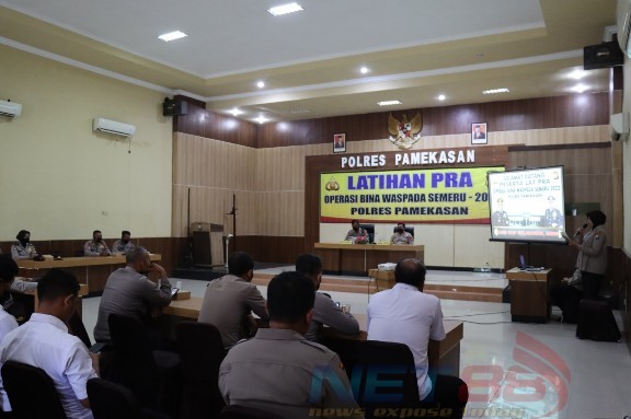 Kepolisian Resor Pamekasan, Madura, Jawa Timur, melaksanakan giat Lat Pra Ops Bina Waspada Semeru 2022 berlangsung pada Senin (24/10/2022) di Gedung Bhayangkara Polres Pamekasan.