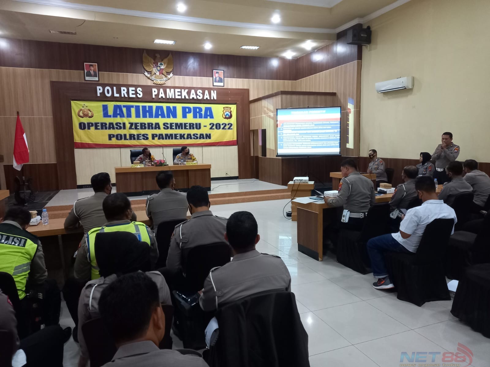 Dalam Lat Pra Ops Zebra Semeru 2022 Kapolres Pamekasan AKBP Rogib Triyanto memberikan,” Arahan terkait pelaksanaan Operasi Zebra Semeru 2022 yang akan digelar pada tanggal 3 s/d 16 Oktober 2022.”