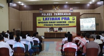 Latihan Pra Operasi (Latpraops) dengan sandi “Sikat Semeru 2022” yang digelar Polres Pamekasan yang berlangsung di Gedung Bhayangkara Polres Pamekasan.