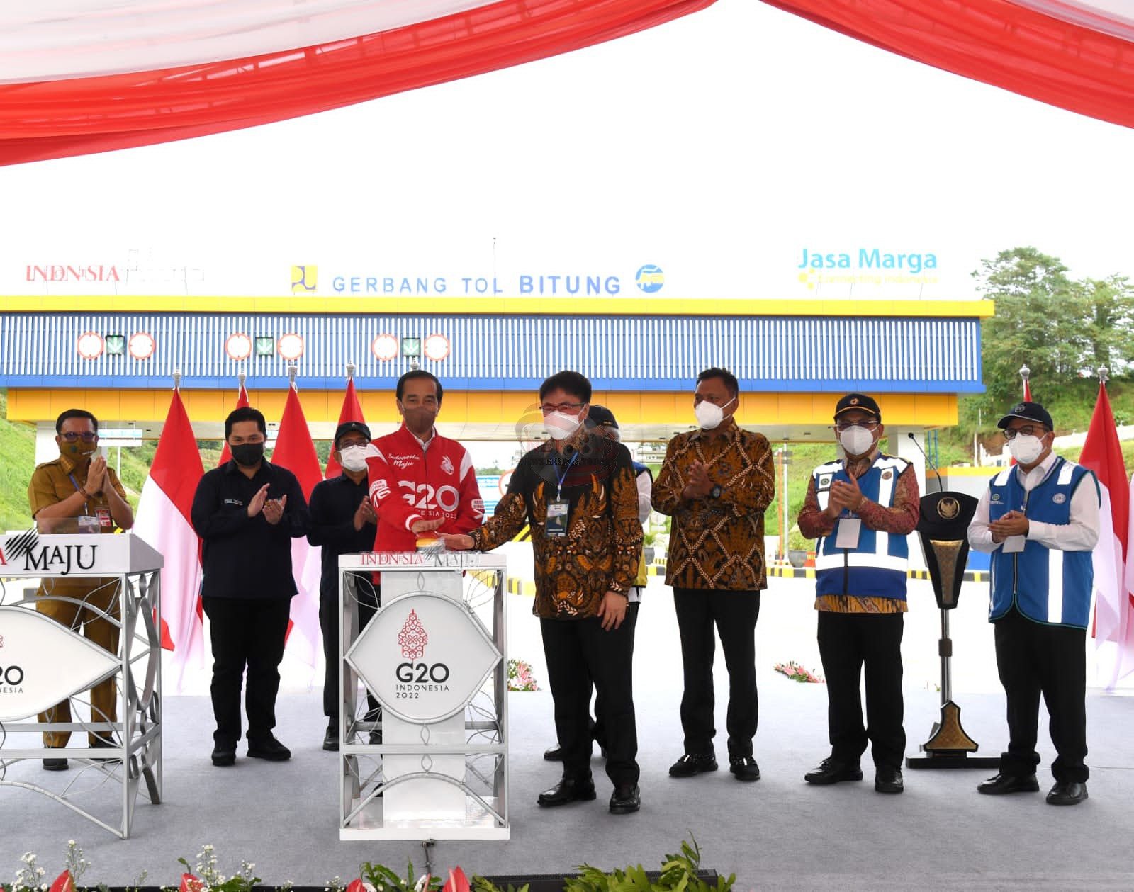 Turut mendampingi Presiden dalam peresmian tersebut antara lain Menteri Pekerjaan Umum dan Perumahan Rakyat Basuki Hadimuljono, Menteri Sekretaris Negara Pratikno, Menteri BUMN Erick Thohir, Gubernur Sulawesi Utara Olly Dondokambey, Wali Kota Manado Andrei Angouw, dan Wali Kota Bitung Maurits Mantiri.