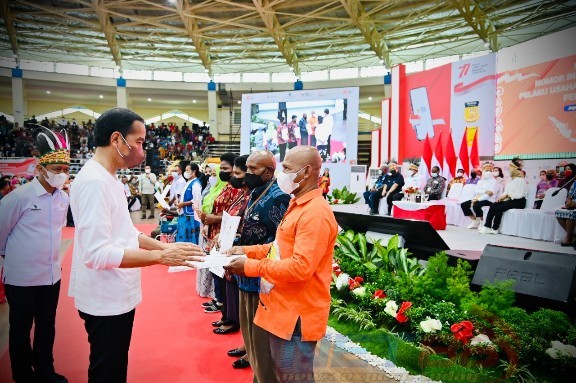 Saat memberikan nomor induk berusaha (NIB) kepada para pelaku UMKM di Gedung Olahraga (GOR) Toware (HMS), Kabupaten Jayapura, pada Rabu, 31 Agustus 2022, Presiden menyampaikan bahwa dari 64 juta UMKM di Indonesia, baru 1,8 juta UMKM yang telah memiliki NIB.