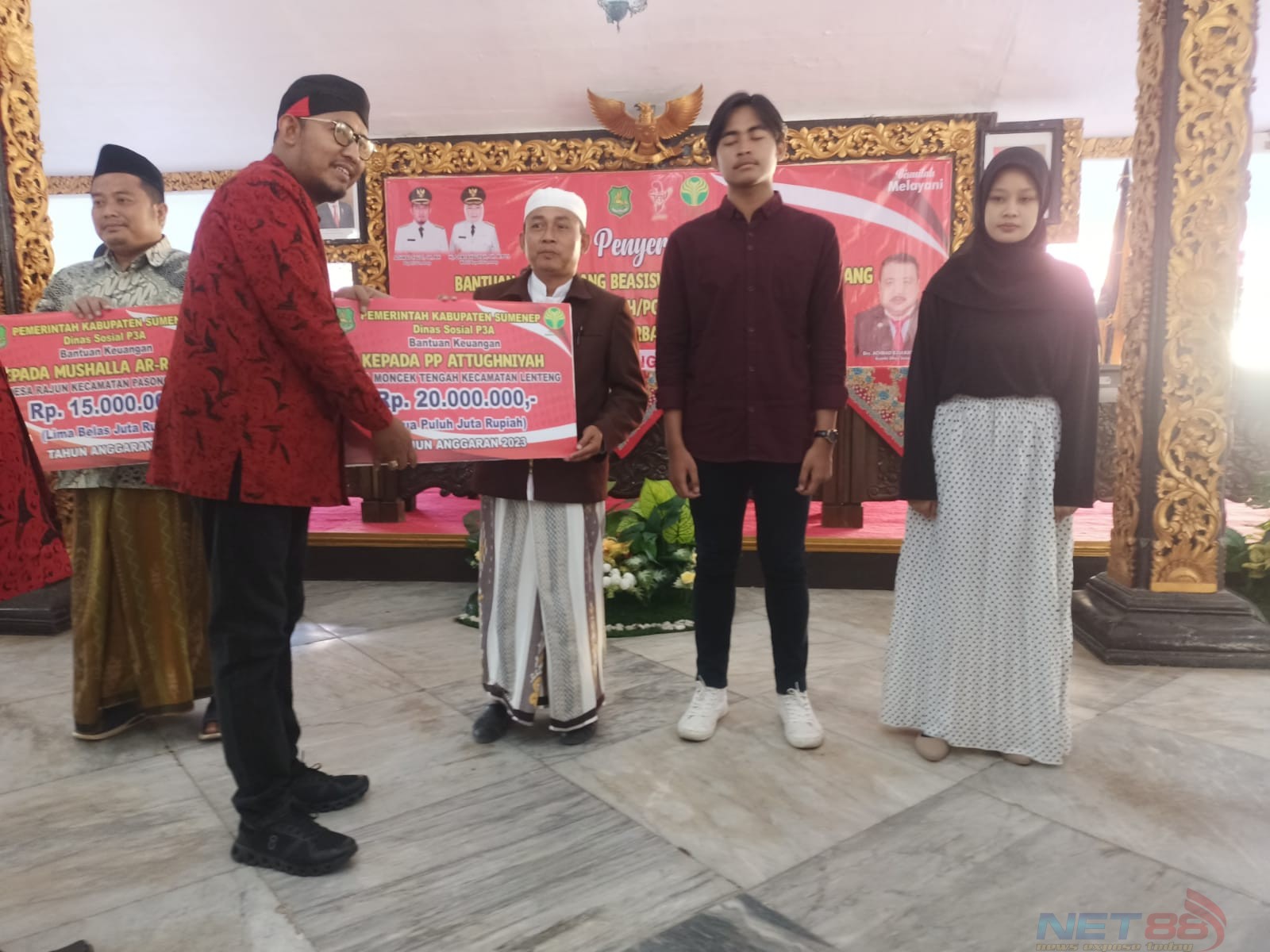 Kegiatan tersebut dilaksanakan oleh Dinsos P3A Kabupaten Sumenep, dengan tema ‘Penyerahan Bantuan Uang Beasiswa Dan Bantuan Hibah Uang Masjid, Mushola, Ponpes, Lembaga Sosial Yang Berbadan Hukum’ Tahun Anggaran 2023, dihadiri oleh Bupati Sumenep, Kepala Dinsos P3A dan para tamu undangan di Pendopo Agung Keraton Sumenep.