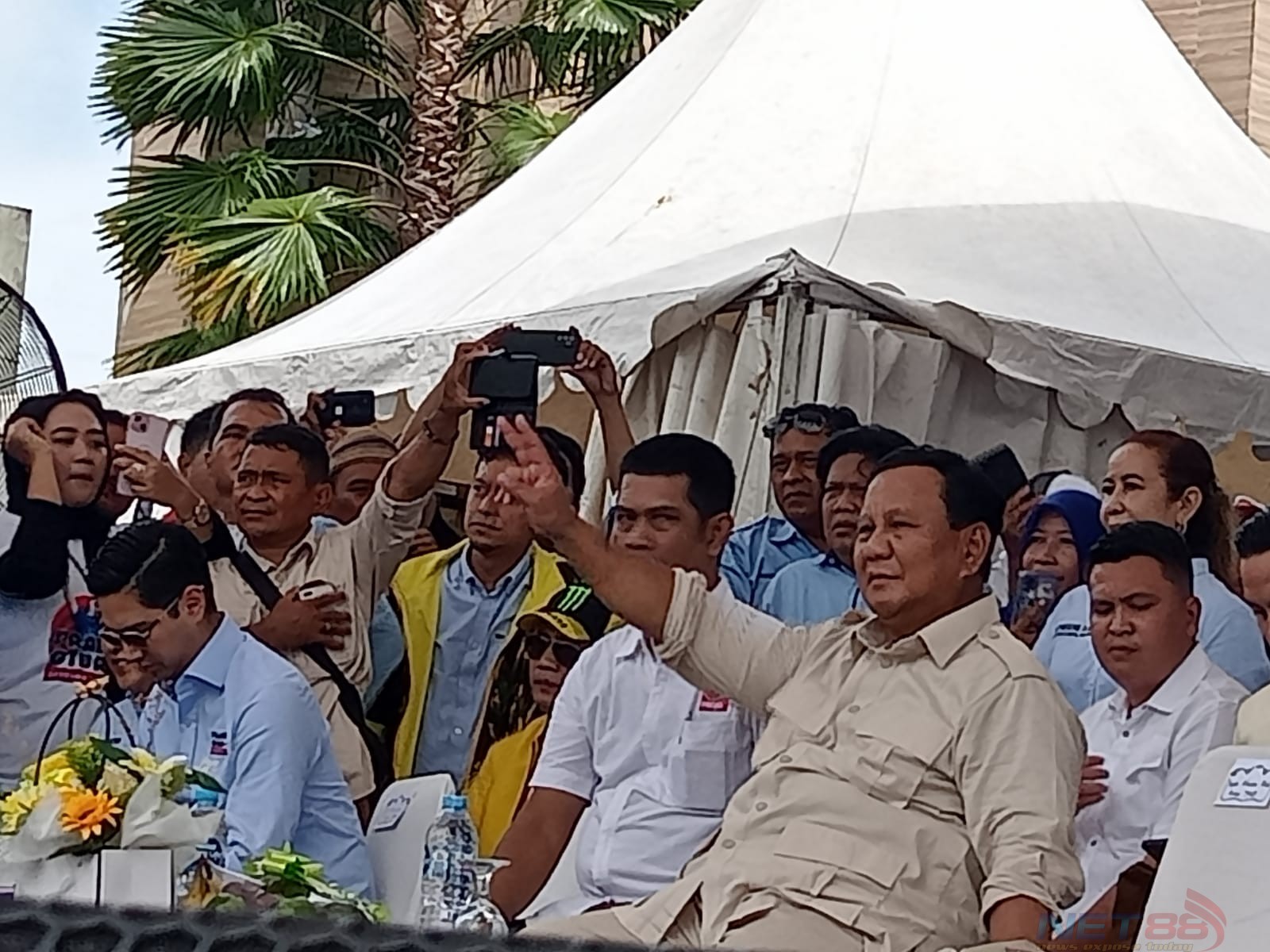 Kedatangan prabowo di sambut meriah puluhan ribu para pendukungnya yang notabennya multi Eknis di Qubu Resort Kabupaten Kubu Raya Provinsi Kalbar,iring iringan rombongan dengan antusias masyarakat multi Eknis meneriakin Prabowo presiden 2024