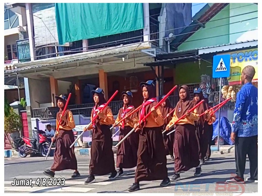 Sampang, NET88.CO – Menyambut peringatan Hari Ulang Tahun Republik Indonesia (HUT RI) ke-78 pada tanggal 17 Agustus 2023 mendatang, sejumlah siswa Sekolah Menengah Pertama Negeri 2 (SMPN 2) Sampang Jawa Timur mempersiapkan diri mengikuti latihan gerak jalan tongkat, Jumat (4/8/2023).