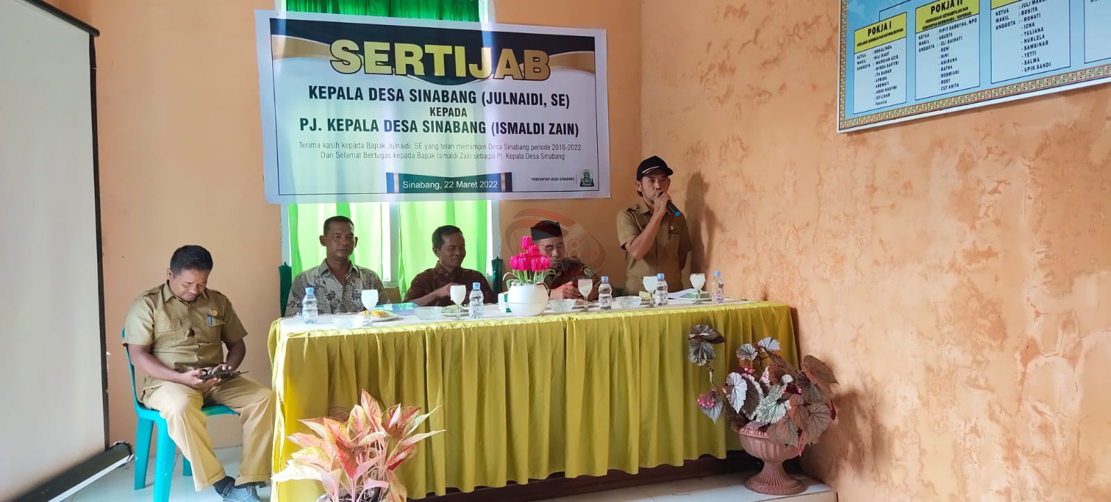 Serah Terima Jabatan Ismaldi Zain sebagai pejabat sementara (pjs) kepala desa Sinabang di aula kantor desa Sinabang, yang dihadiri langsung Camat Simeulue Timur Ali Afwan, Ketua BPD dan anggota, tokoh masyarakat dan calon kepala desa Sinabang. Selasa, (22/3/2022).