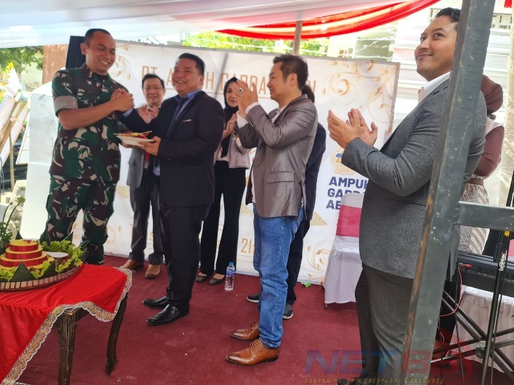 Grand opening PT Ampuh Garda Abadi ditandai dengan pemotongan tumpeng oleh Dandim 0733 Kota Semarang, Kolonel Inf. Honi Havana.
