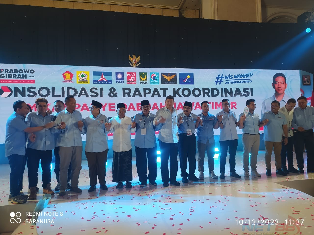 Surabaya, NET88 – Acara Konsolidasi dan Rakorda TKD Jawa Timur yang di hadiri oleh Tokoh Nasional dan Juga Para Ketua Partai Koalisi Jawa Timur Pendukung Prabowo Gibran serta seluruh TDK Kabupaten dan Para Relawan Prabowo Subianto dan Gibran Rakabuming Raka di Grand Empire Palace Lantai 10 Surabaya Jawa Timur.